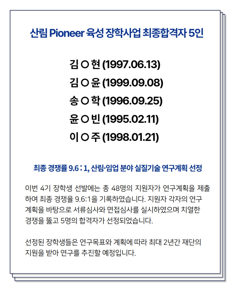 [카드뉴스]제4기 산림 Pioneer 육성 장학사업 합격자 발표
